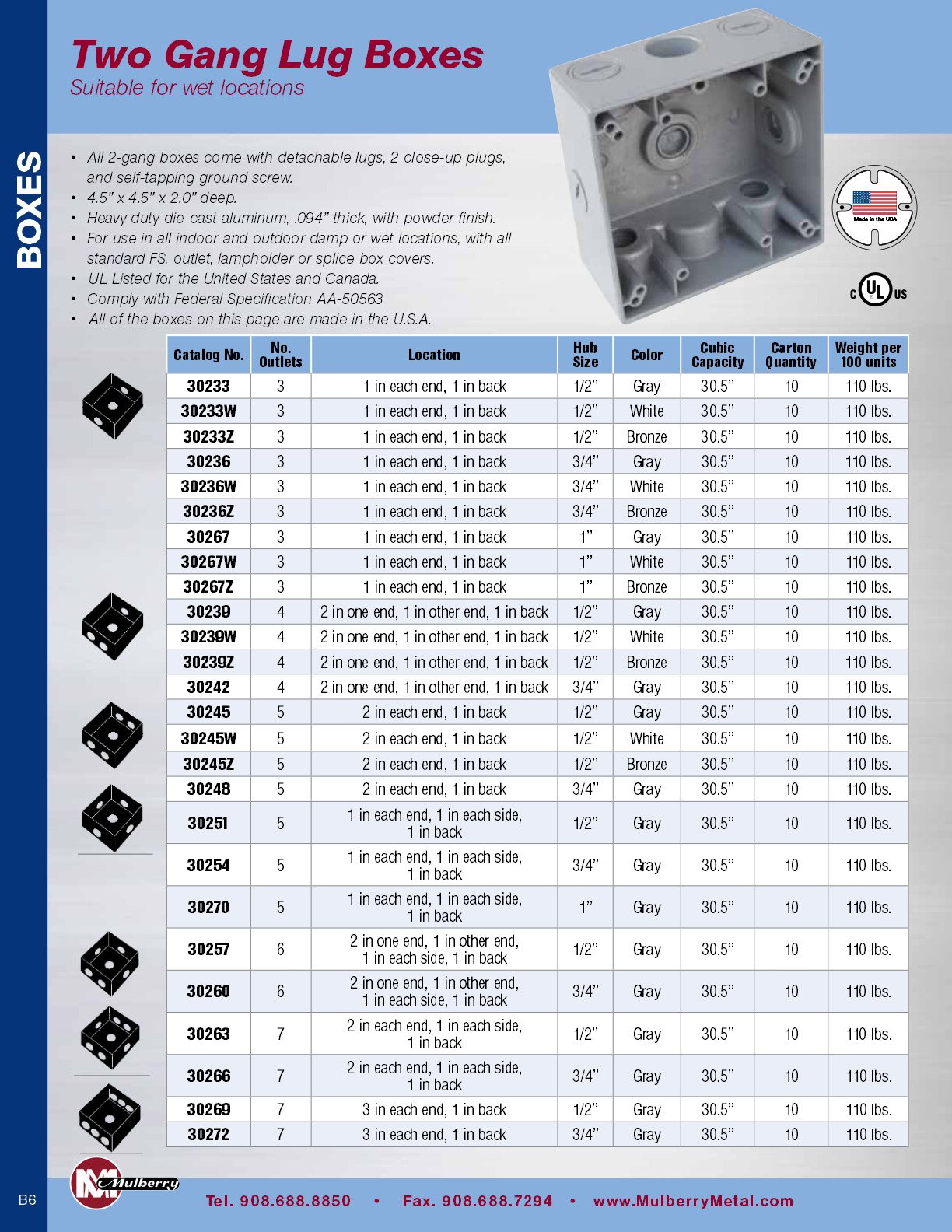 All 2-gang boxes come with detachable lugs, 2 close-up plugs and self-tapping ground screw